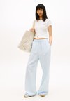 LOOSE LINEN BLEND DRAWSTRING TROUSERS - Παντελόνι - light powdery blue