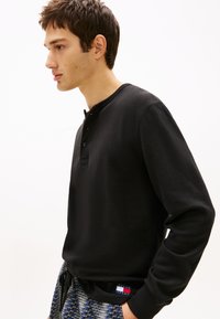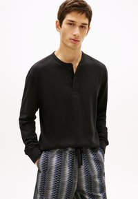 WAFFLE KNIT LONG SLEEVE HENLEY T-SHIRT - Μπλούζα με μακριά μανίκια - black