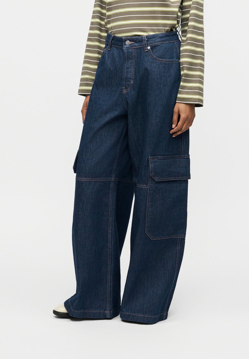 MID RISE - Wide leg - medium blue denim