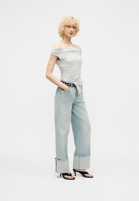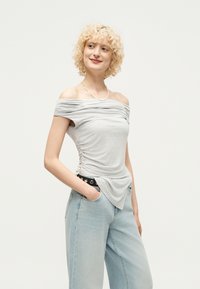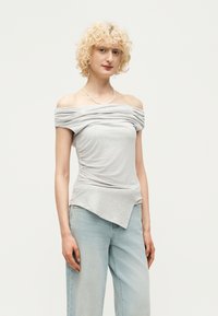 PIN TUCK OFF SHOULDER - Μπλουζάκι με στάμπα - grey melange