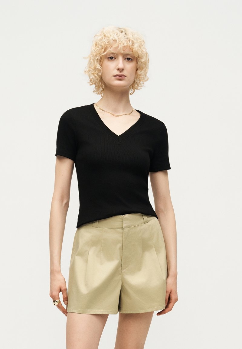 V NECK TEE - Βασικό μπλουζάκι - black