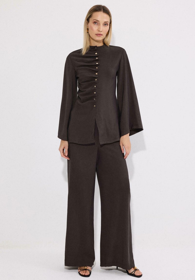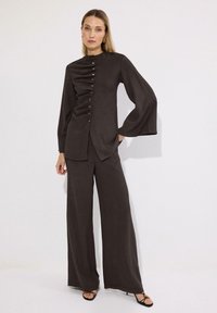 BUTTON-DETAIL TUNIC AND PANTS SET - Παντελόνι - brown