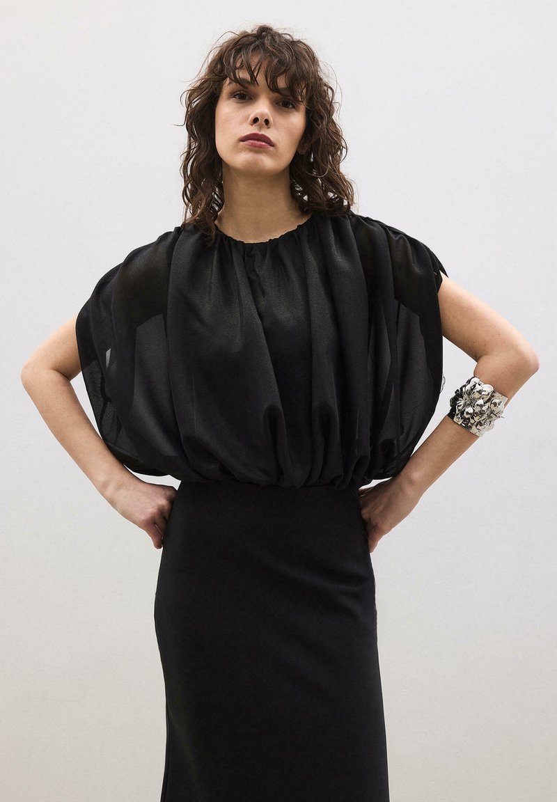 LOW SHOULDER GATHERED BODYSUIT - Μπλούζα - black