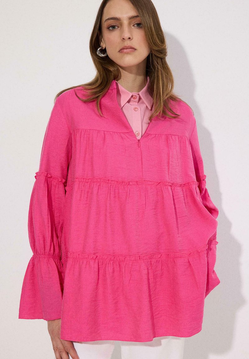 NATURAL TEXTURED FLOUNCED TUNIC - Τουνίκ - fuchsia