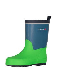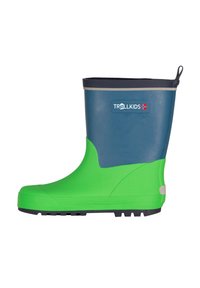 Παιδική βροχερή μπότες σε μπλε και πράσινο χρώμα με υφή στην σόλα και λογότυπο "Trollkids" που απεικονίζει μια μικρή νορβηγική σημαία.