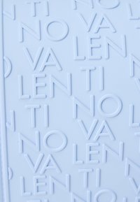 Ελαφρώς γαλάζια τσάντα χιαστί με ανάγλυφο μοτίβο κειμένου "Valentino" και χρυσό ορθογώνιο κούμπωμα, με ρυθμιζόμενο λουρί και χρυσή αγκράφα.