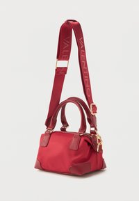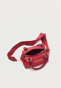 Τσάντα Red Valentino με διπλές επενδυμένες λαβές, χρυσά μεταλλικά στοιχεία, φερμουάρ και λογότυπο σε λείο ύφασμα.