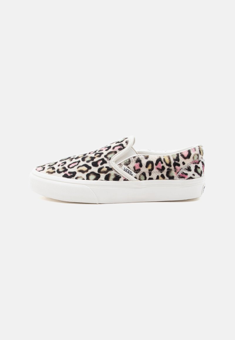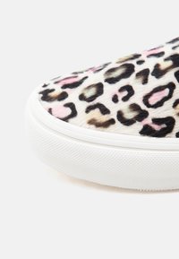 Αθλητικό παπούτσι χωρίς κορδόνια με λευκή σόλα και πολύχρωμο μοτίβο λεοπάρ σε αποχρώσεις ροζ, μαύρου και καφέ.
