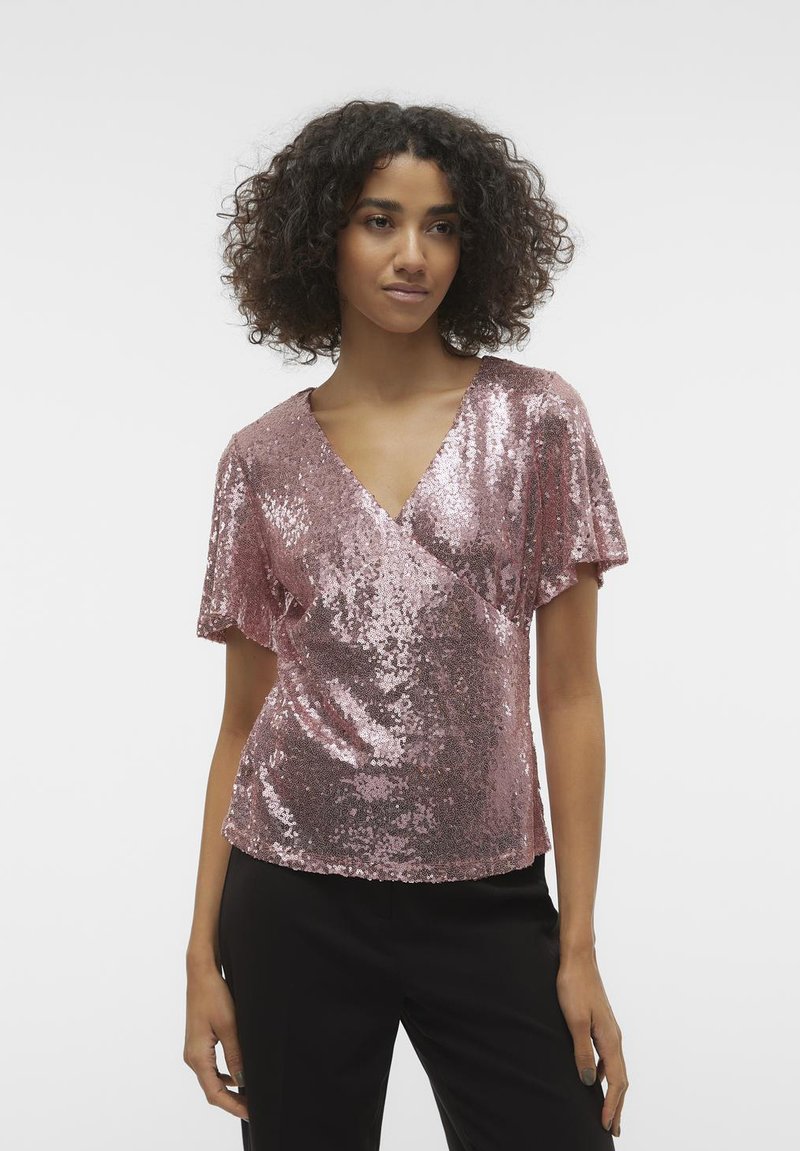 Vero Moda VMKAJE WRAP - Μπλουζάκι με στάμπα - ash rose