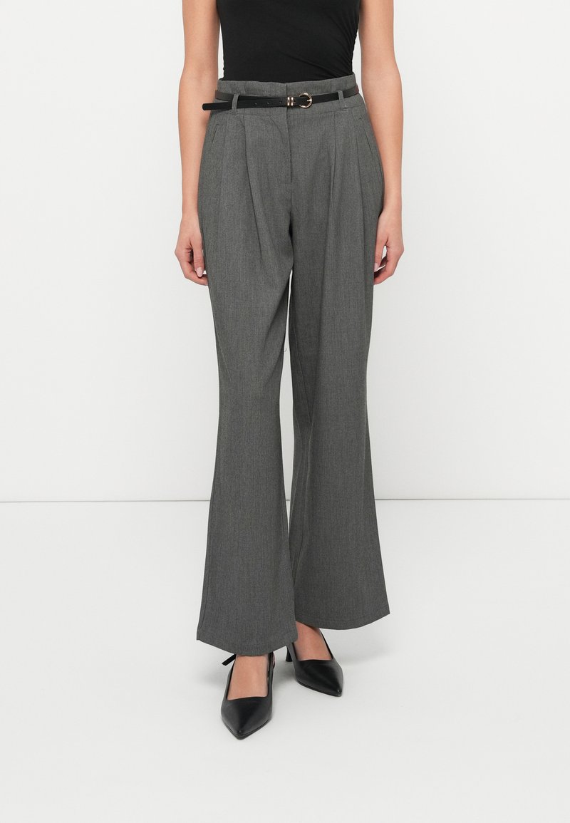 VMTAHIA BELTED PANT - Παντελόνι - dark grey melange