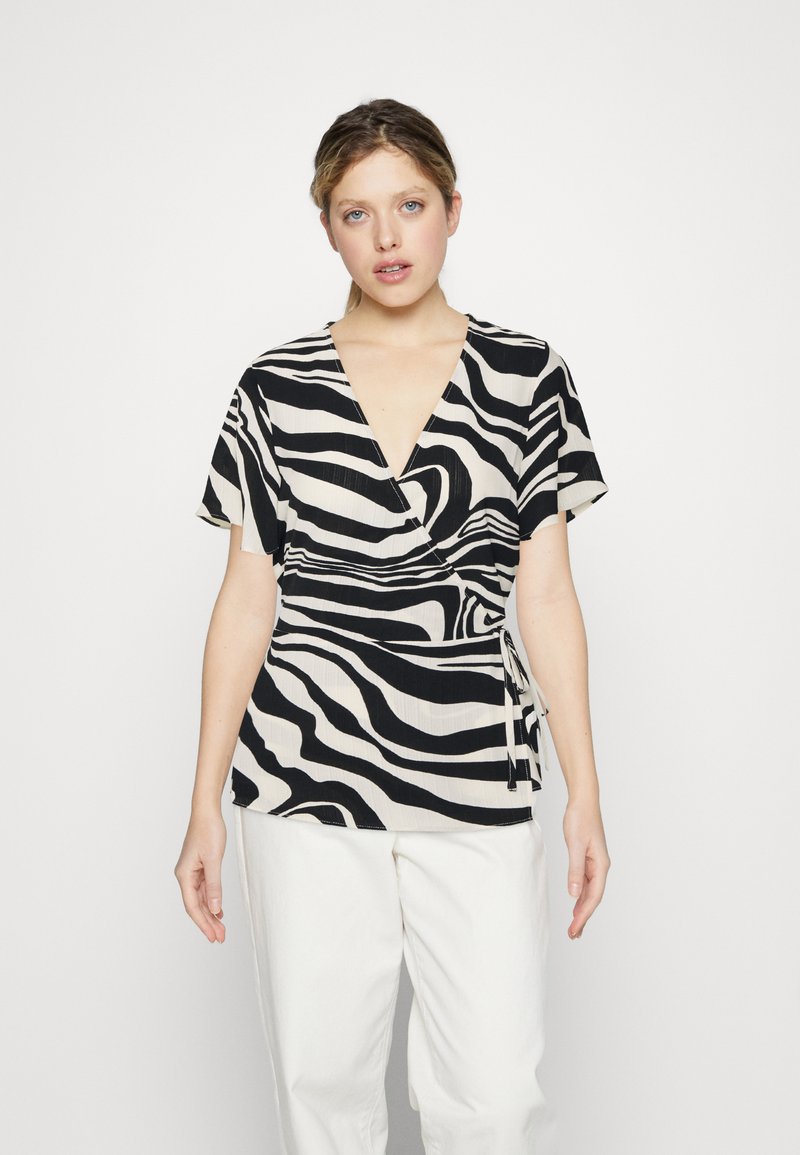 VILA VILOVIE WRAP - Μπλουζάκι με στάμπα - birch/misty