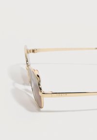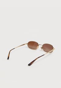 Πεταλούδες γυαλιά ηλίου με χρυσά μεταλλικά πλαίσια και καφέ φακούς με απόχρωση, διαθέτουν λεπτούς βραχίονες με σκούρα καφέ άκρα.