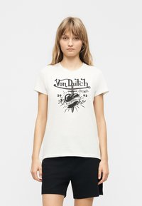 TEE SHIRT THREADS ROUND NECK WITH FRONT PRINT AND STUDS - Μπλουζάκι με στάμπα - beige