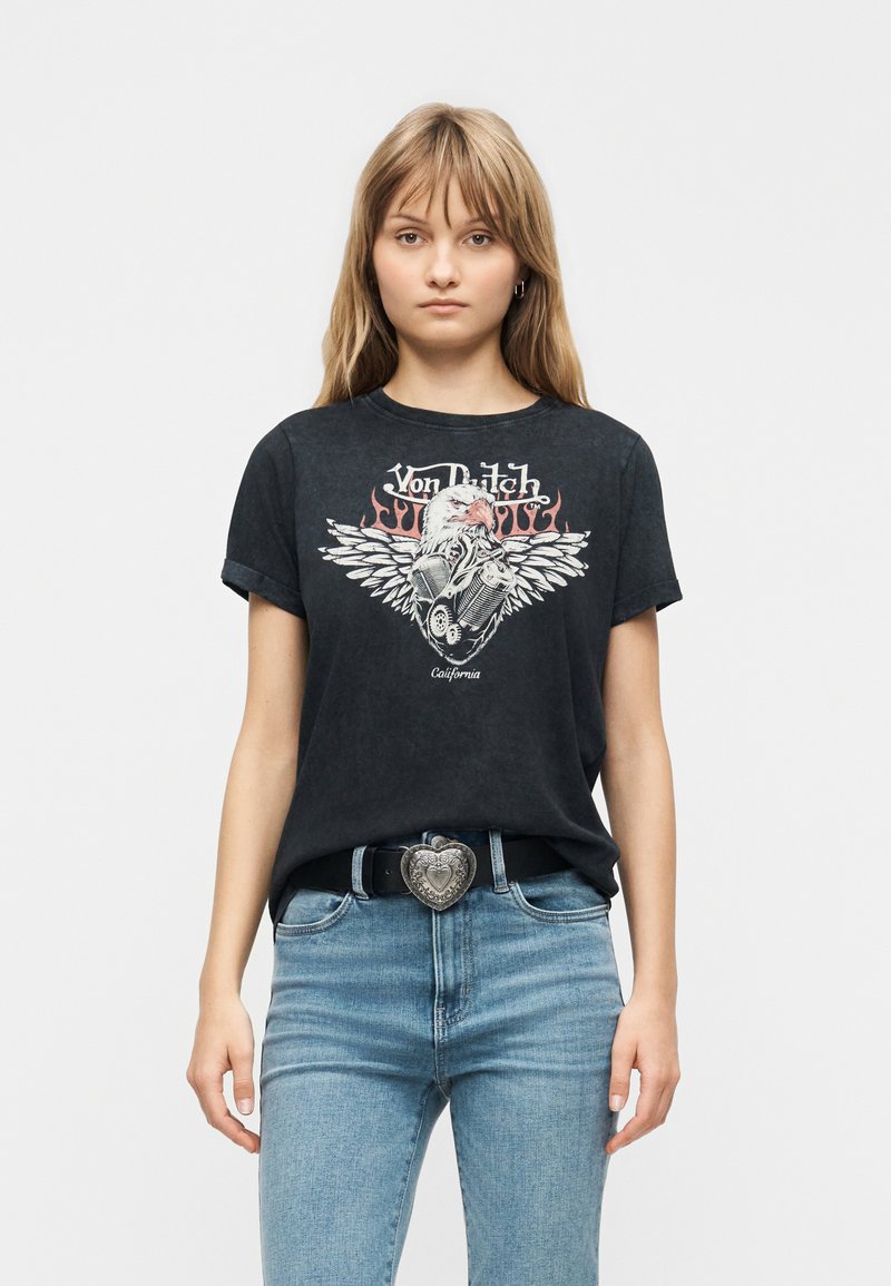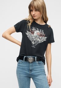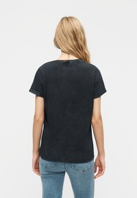 TEE SHIRT UNI FADED ROUND NECK AND FRONT PRINT - Μπλουζάκι με στάμπα - black