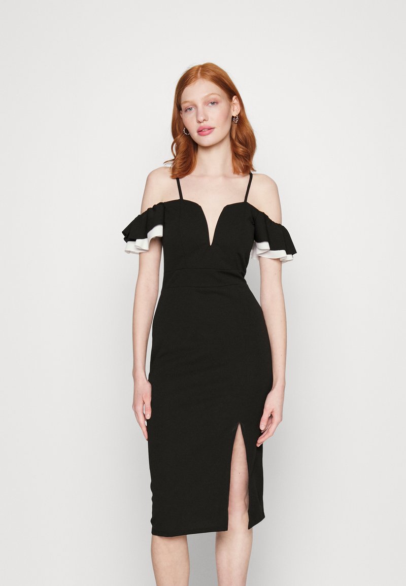 SIMAH FRILL MIDI DRESS - Φόρεμα από ζέρσεϊ - black/white