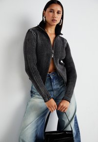 MOCK NECK ZIP CARDIGAN - Ζακέτα - washed black