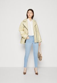 Το μέγεθος του προϊόντος είναι μικρότερο από το κανονικό για το χρώμα ανοιχτό μπλε τζιν, επομένως προτείνουμε να αγοράσεις ένα μέγεθος μεγαλύτερο.