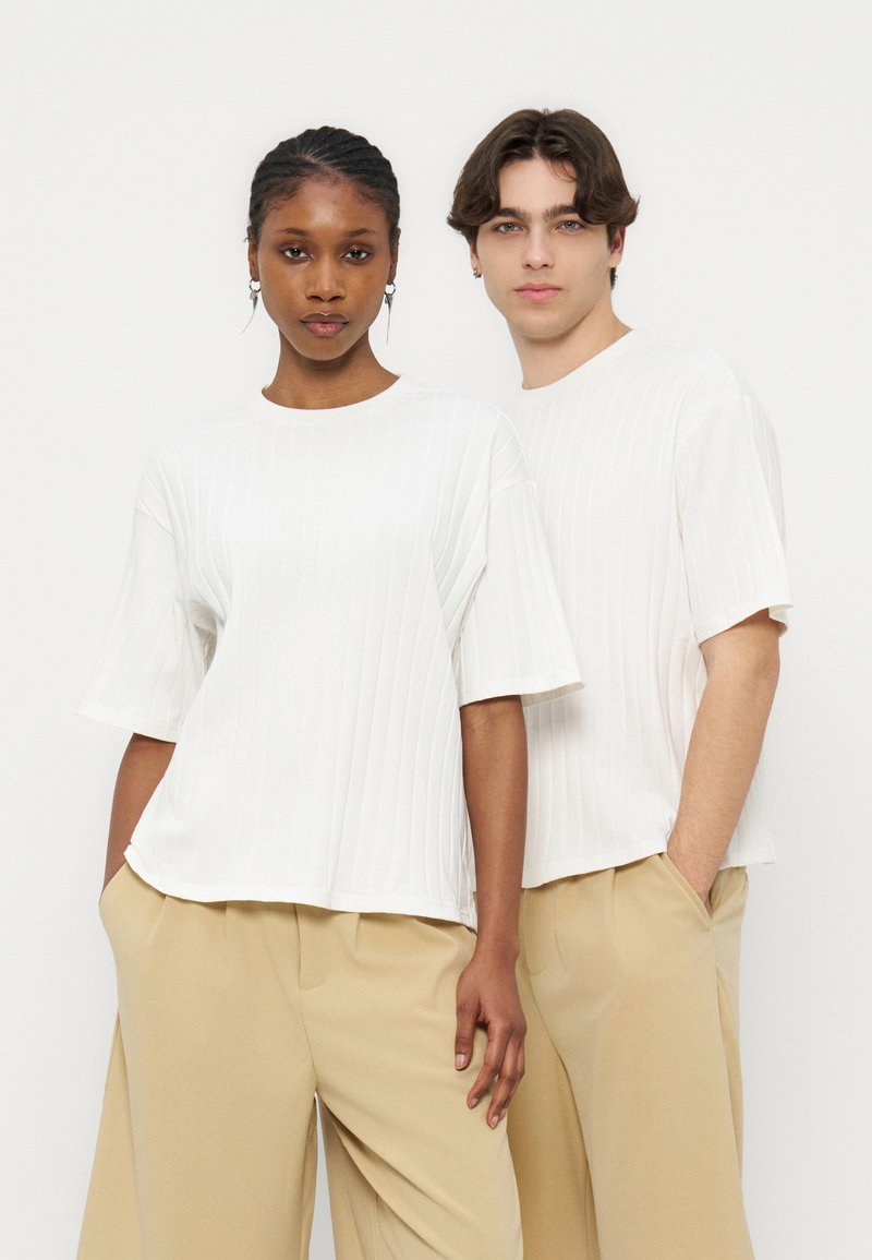 UNISEX BOXY CROPPED FIT WIDE RIB TOP - Βασικό μπλουζάκι - egret